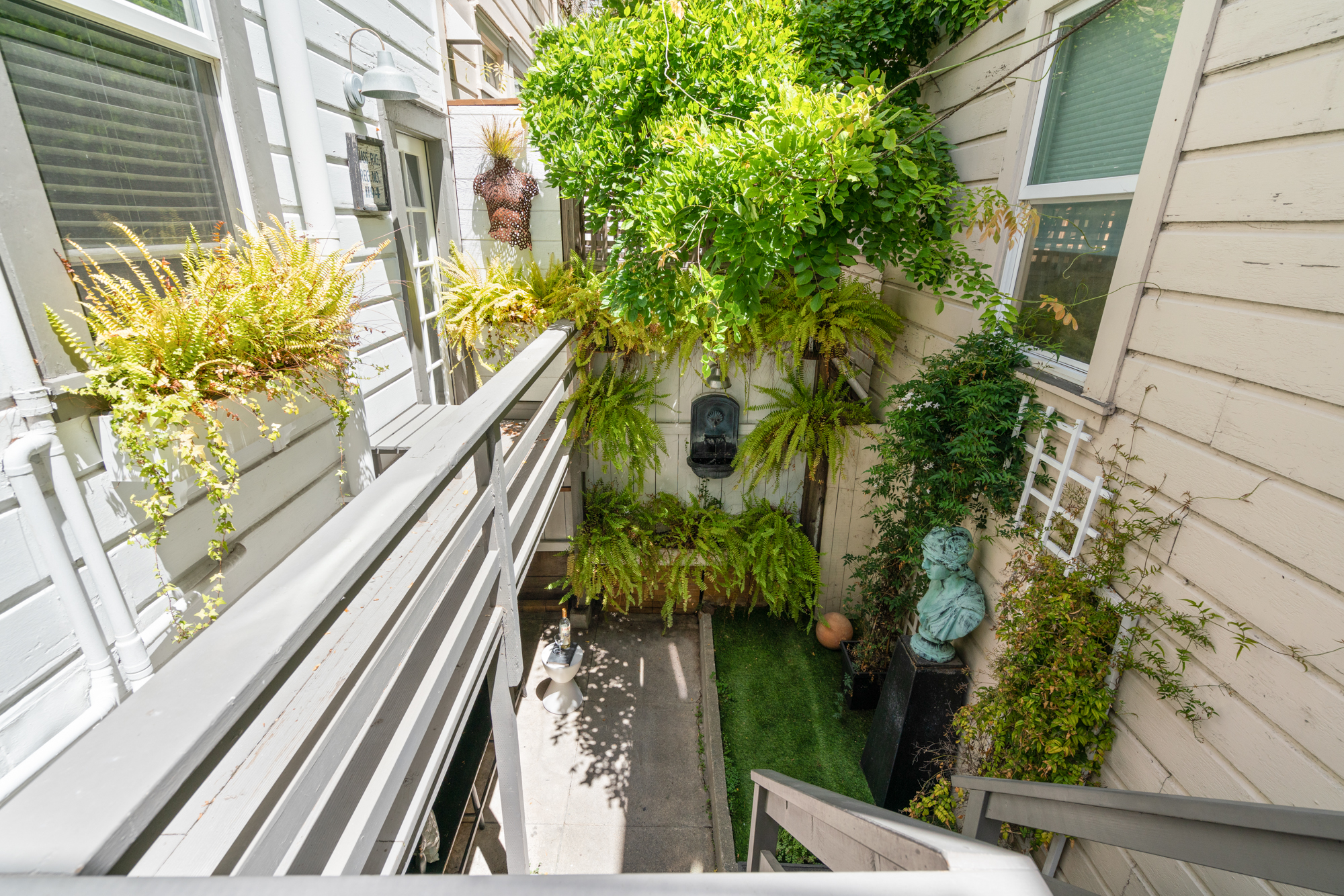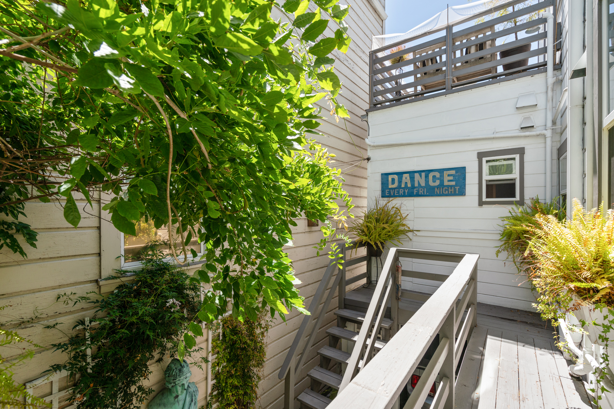 - Owner's unit has an upper floor deck and a lower deck with a charming yard