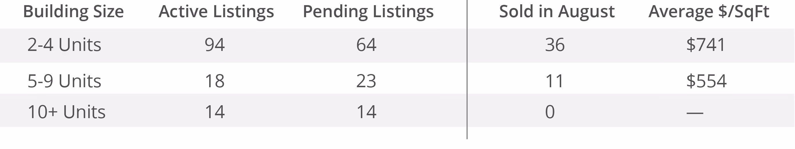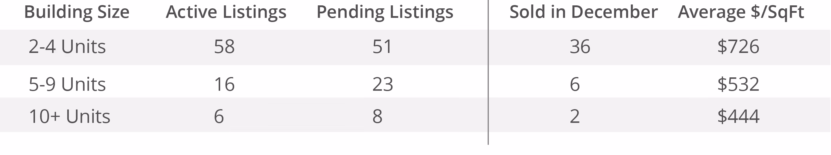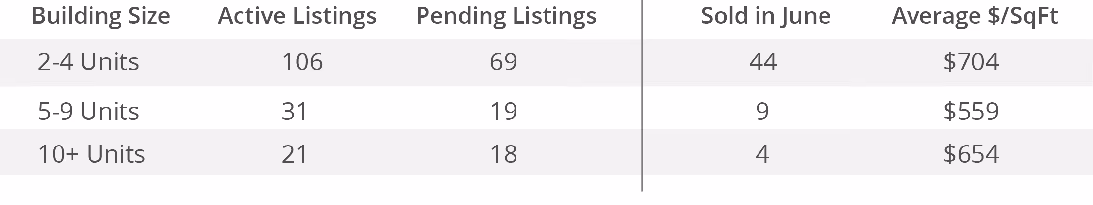 Track San Francisco's multi-unit property market month by month. See active listings, pending sales, closed transactions, and average price per square foot for 2-unit through 10+ unit buildings. Use this data to understand where the market is heading and how your property compares.