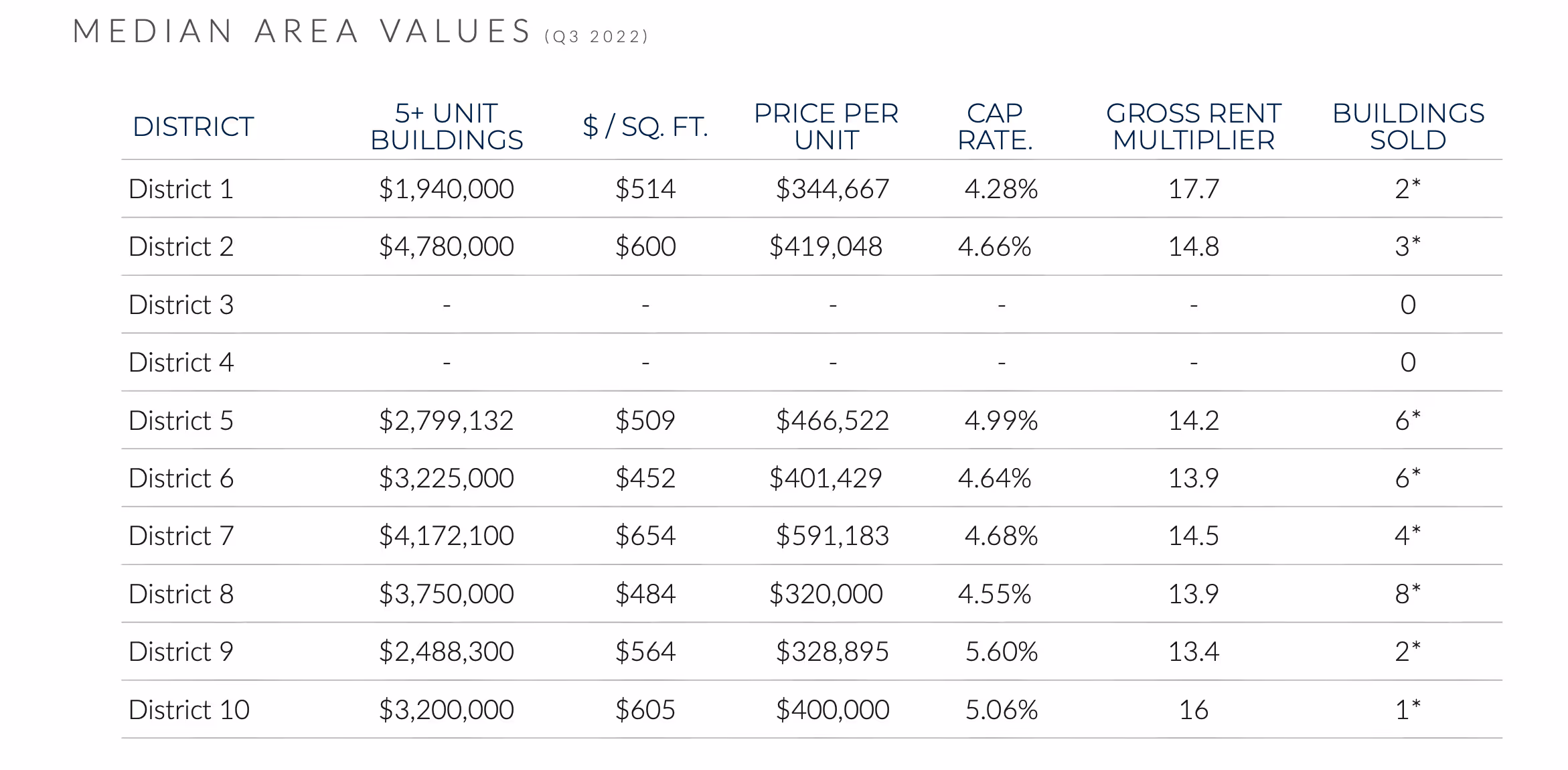 Similar to the overall residential market in San Francisco, the apartment building market recorded significant downtrends due to financial market uncertainty and volatility.